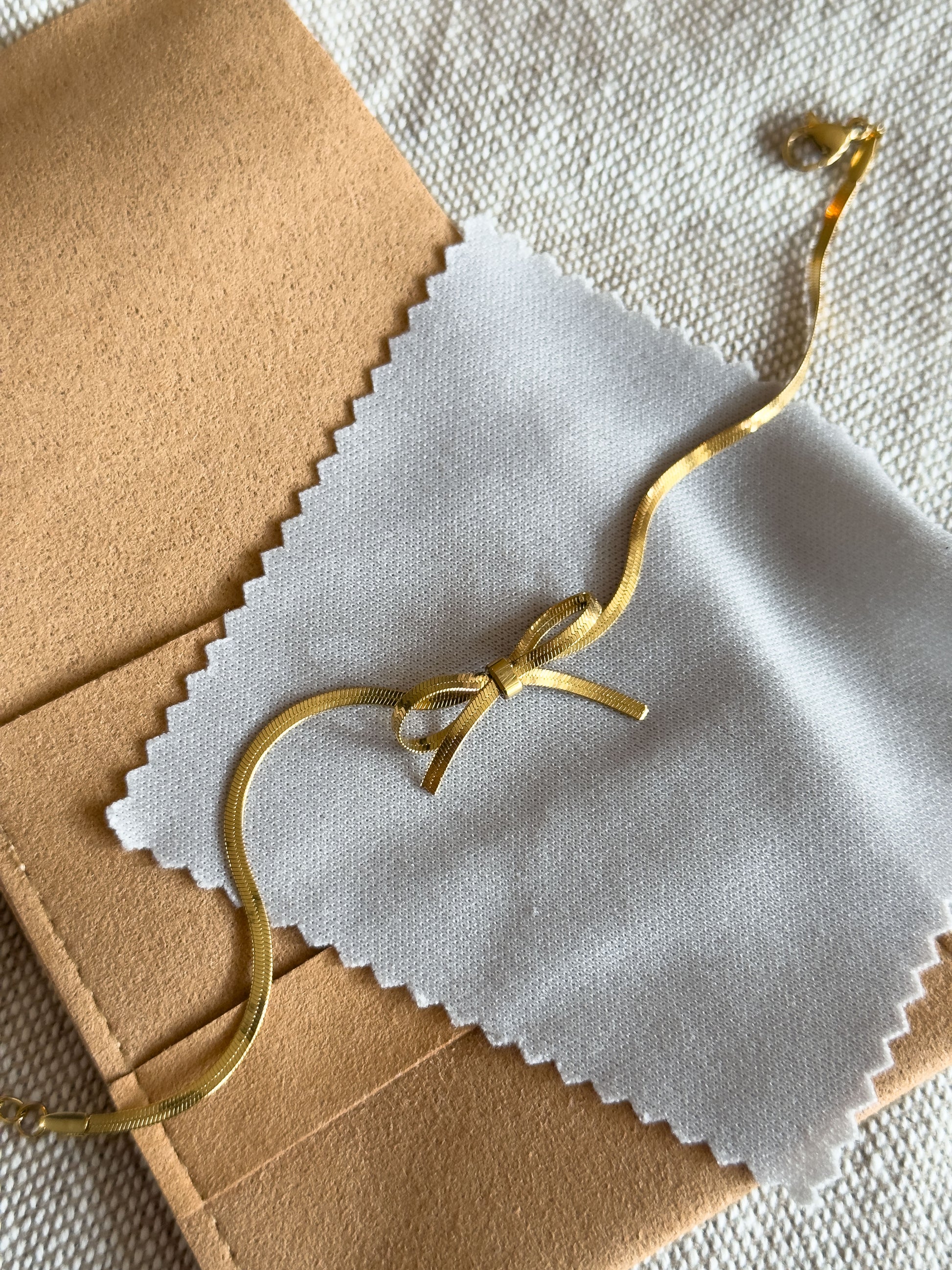 Armbandje goud met strik. Geleverd in sieradenzakje met poetsdoekje.